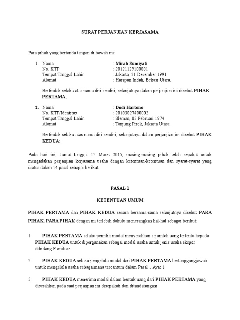 Contoh Surat Perjanjian Kerja Sama PT Kalog